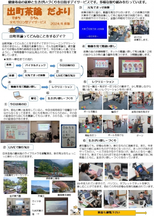 出町茶論ってどんなことをするデイ?というお声に出町茶論ではどんな活動やどんな様子で日々過ごしていただいているかをチラシでご紹介します!